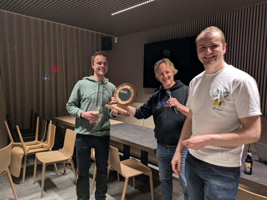 Na de speech was het tijd voor het echte werk: de uitreiking van de jaarprijzen. In drie klassen werden de kampioenen van het seizoen in het zonnetje gezet — met een prachtige trofee in de vorm van een scheepspatrijspoort en veel applaus vanuit de zaal.